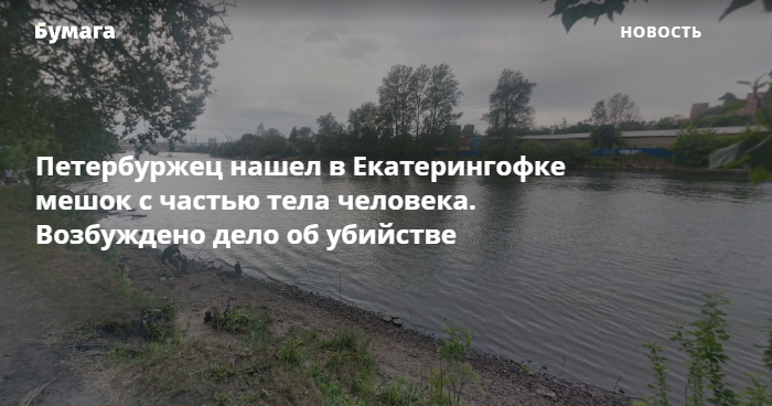 Во вторник, 22 сентября, в реке Екатерингофка в Петербурге нашли строительный мешок с частью тела неизвестного мужчины. Об этом сообщает Следственный комитет.