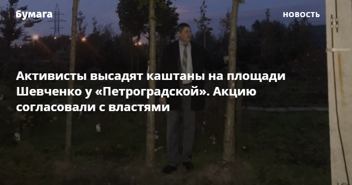 Активисты в середине октября высадят каштаны на площади Шевченко в Петроградском районе. Об этом сообщается в группе «Деревья Петербурга» во «ВКонтакте».