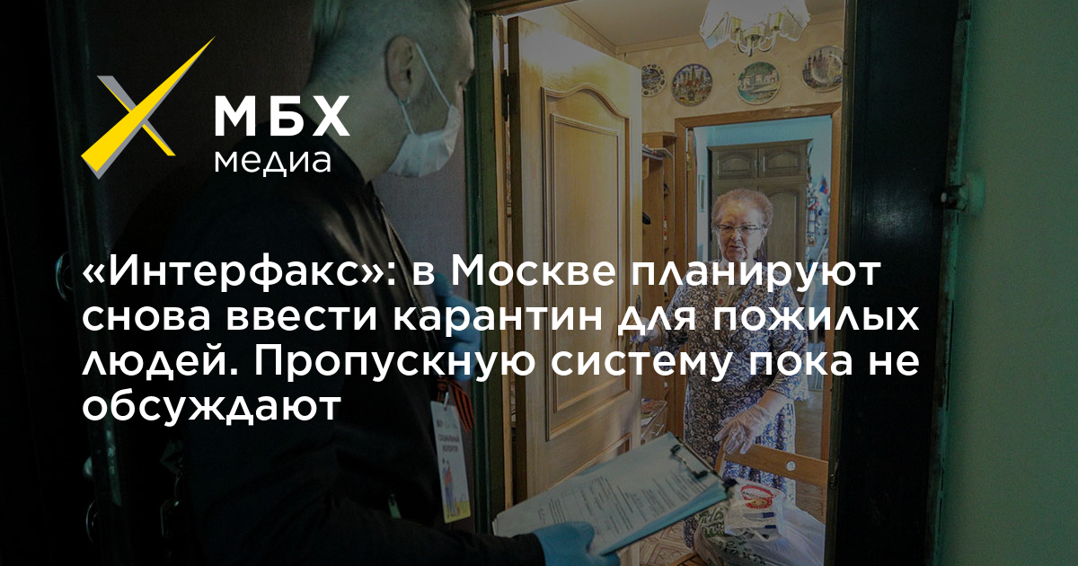 «Интерфакс»: в Москве планируют снова ввести карантин для пожилых людей. Пропускную систему пока не обсуждают