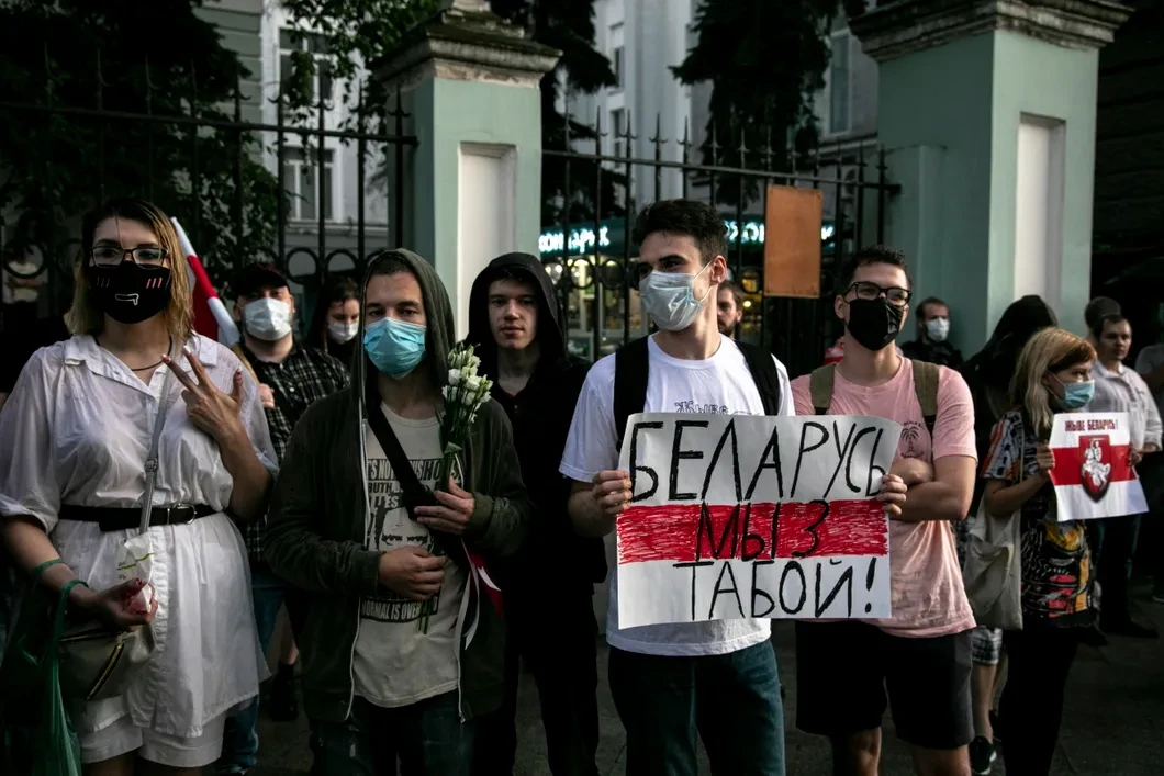 Акция в поддержку белорусского протеста у посольства Республики Беларусь в Москве. Фото: Влад Докшин / «Новая газета»