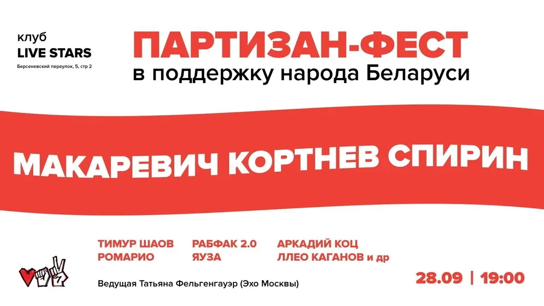 Это первый такой концерт. Если бы у нас получилось, уверен: было бы продолжение. Как только мы завели в фейсбуке страницу «Партизан-фест», мне в личку стали десятками писать музыканты: тоже хотим сыграть. Происходящее в Беларуси проняло даже тех, кто всю жизнь говорил: политика — фу, мы в эту гадость не впишемся. Но это не политика, это скорее про совесть.