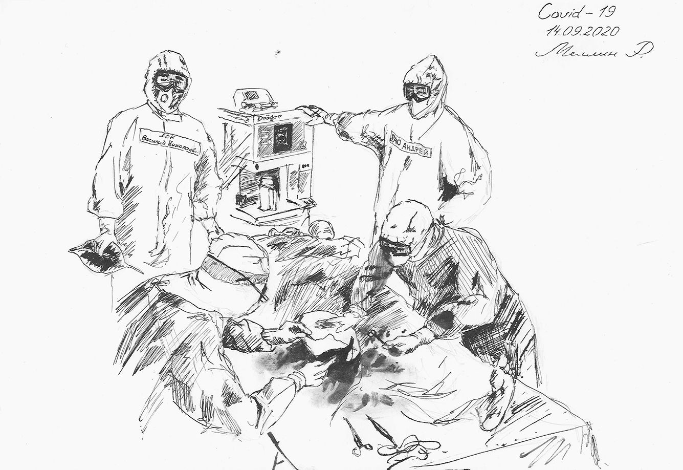 Мы поговорили с хирургом из «красной зоны» ковидного госпиталя, который рисует коллег и пациентов. Руслан Меллин отработал первую двухнедельную смену в «красной зоне» в сентябре. Мы обсудили с ним будни врача в ковидной больнице, стресс, страх перед болезнью и смертью, общение с пациентами и их близкими — и, конечно, увлечение рисованием. Почитайте интервью и посмотрите рисунки.
