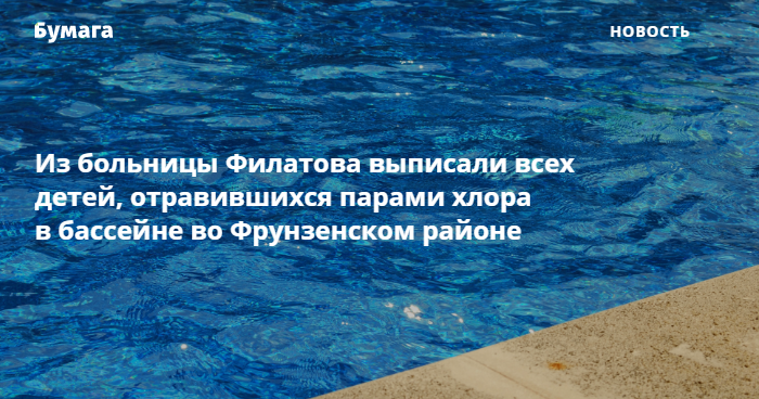 Из больницы Филатова выписали всех детей, отравившихся парами хлора в бассейне во Фрунзенском районе