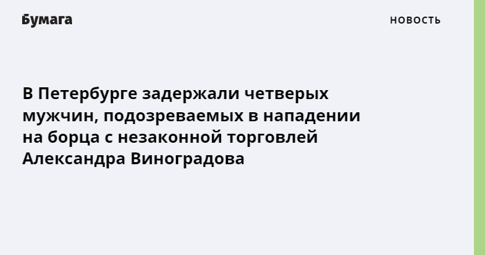 В Петербурге задержали граждан, подозреваемых в нападении на активиста и борца с незаконной торговлей Александра Виноградова. Об этом «Бумаге» сообщили в пресс-службе ГУ МВД по городу и области.
