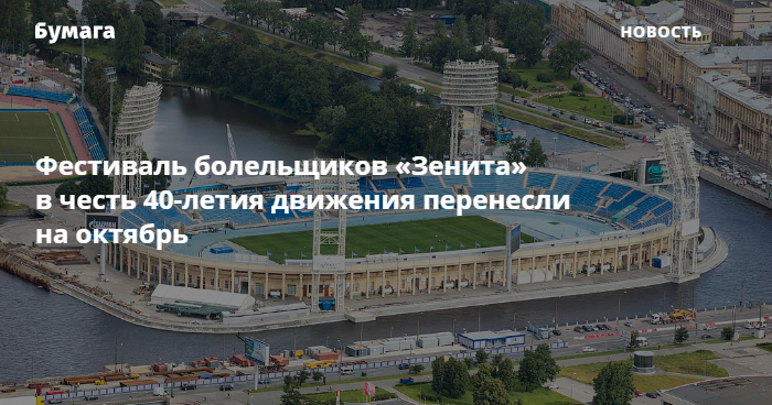 Фестиваль в честь 40-летия фанатского движения «Зенита» перенесли ориентировочно на 4 октября. Мероприятие пройдет на стадионе «Петровский», сообщает пресс-служба петербургского клуба.
