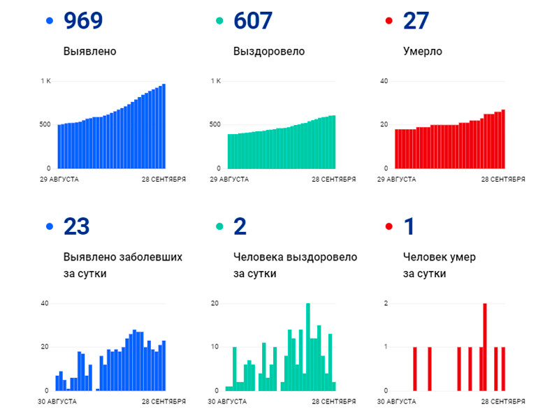По данным федерального оперштаба по борьбе с коронавирусной инфекцией, с начала пандемии в Севастополе врачи зафиксировали 969 случаев заражения, непосредственно от COVID-19 скончались 27 человек. За последние сутки в городе зарегистрированы 23 новых случая заболевания, один пациент умер.