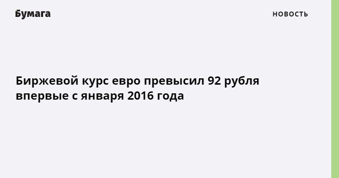 Курс евро превысил 92 рубля