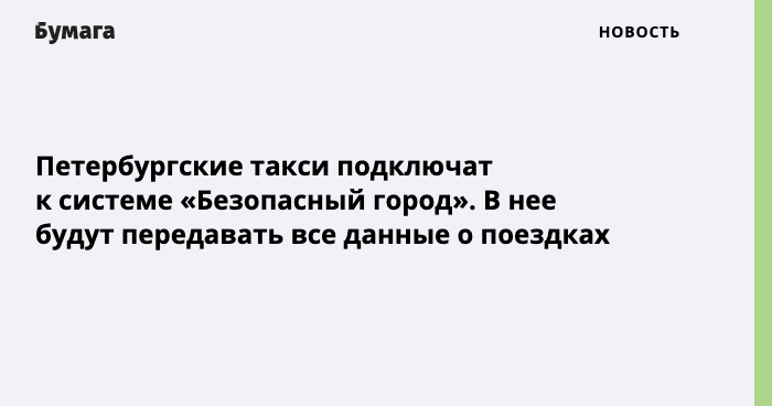 Петербургские такси подключат к системе «Безопасный город»