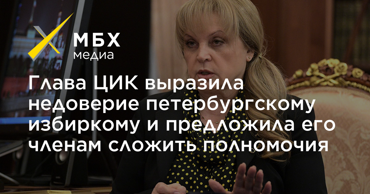 Памфилова также напомнила, что на последнем заседании горизбирком сформировал муниципальные комиссии, включив туда муниципальных чиновников. В итоге глава ЦИК предложила выразить недоверие петербургскому избиркому и ее председателю Виктору Миненко и предложить им самостоятельно сдать свои полномочия. Коллеги по ЦИК единогласно поддержали это предложение.