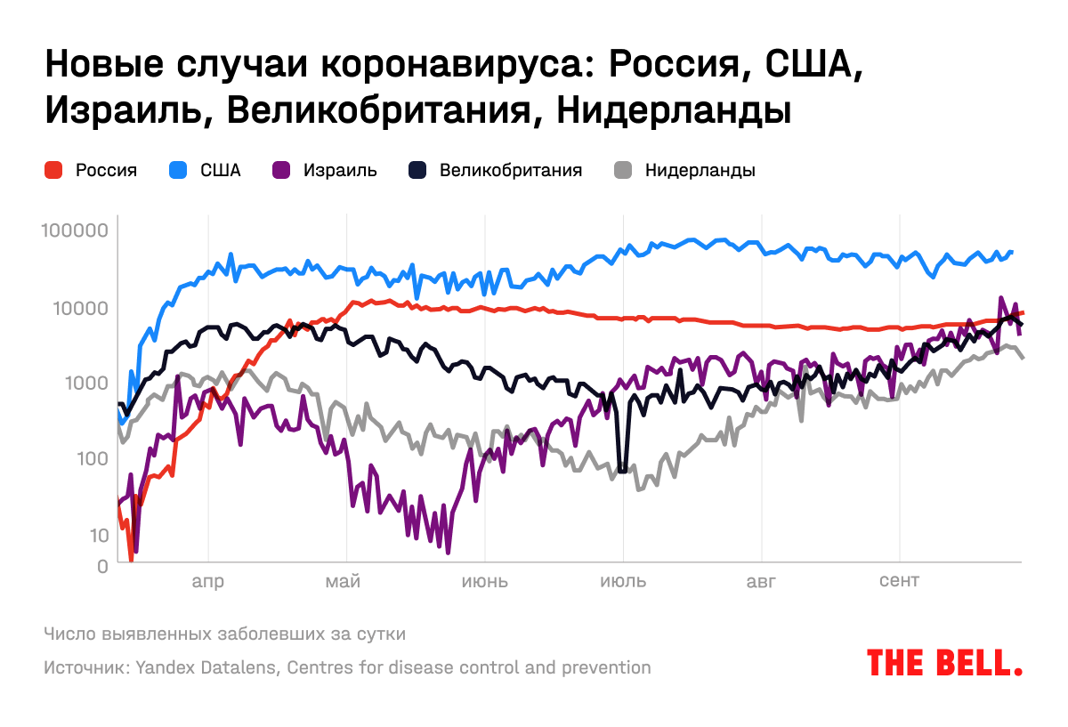 Тамм предполагает, что резкий рост числа заражений в Москве в сентябре может быть обусловлен тем, что «московские власти решились — или им разрешили — вернуться к честному информированию о положении вещей». Собеседник The Bell, знакомый с ходом обсуждения в мэрии, говорит, что цифры заболеваемости по Москве действительно решили «отпустить» — чтобы люди серьезнее относились к ограничительным мерам.