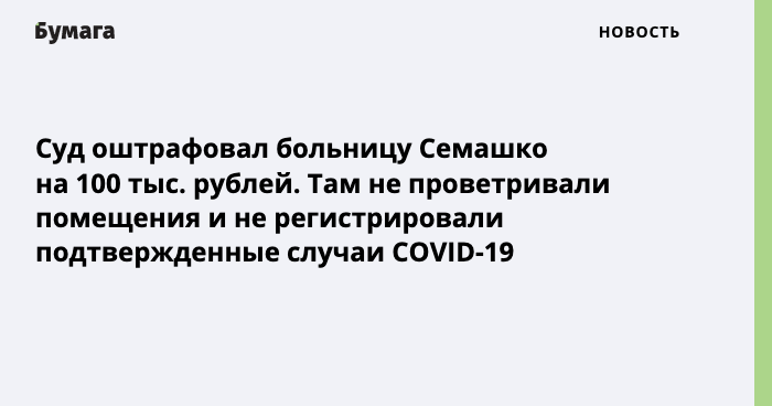Суд оштрафовал больницу Семашко на 100 тысяч рублей