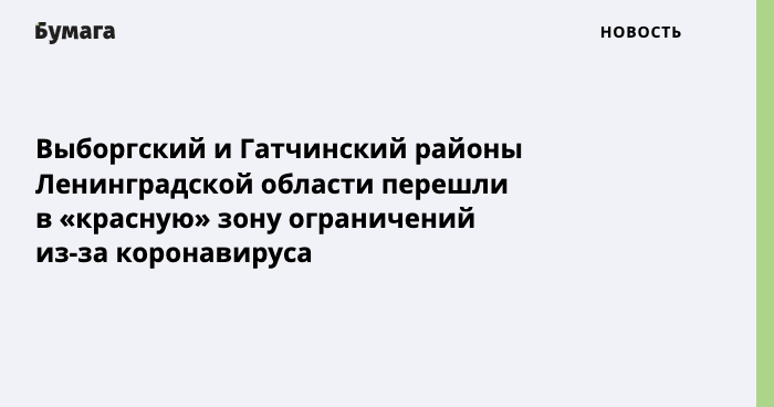 Ранее «Бумага» сообщала, что в «красную» зону ограничений перешел Всеволожский район Ленобласти. Тогда же правительство региона перевело в «желтую» зону Приозерский район.