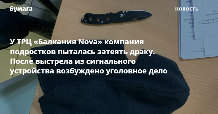 Недалеко от ТРЦ «Балкания Nova» компания подростков 16–17 лет пыталась напасть на юношу 19 лет. Возбуждено уголовное дело о хулиганстве (ст. 213 УК). Об этом сообщает пресс-служба МВД по Петербургу.