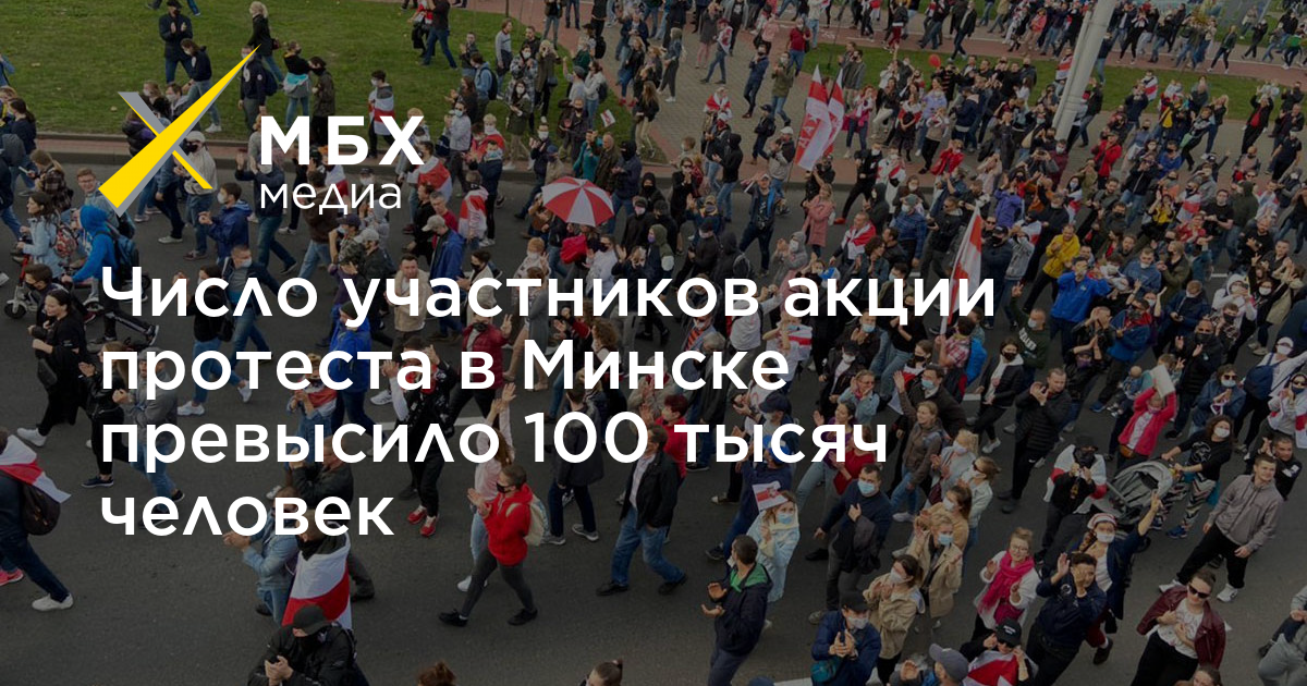 В акции протеста в Минске участвуют более 100 тысяч человек, сообщает корреспондент «МБХ медиа».