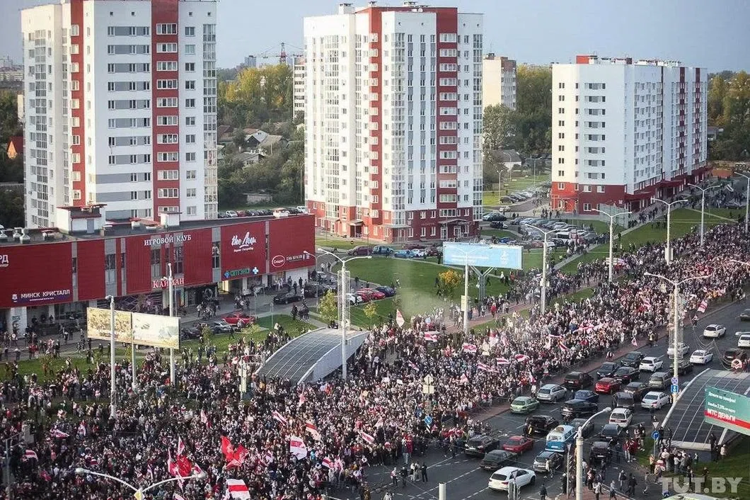 Воскресная акция «Марш освобождения политзаключенных» началась в 14:00 в нескольких городах Беларуси. В Минске на нее пришли более 100 тысяч человек.