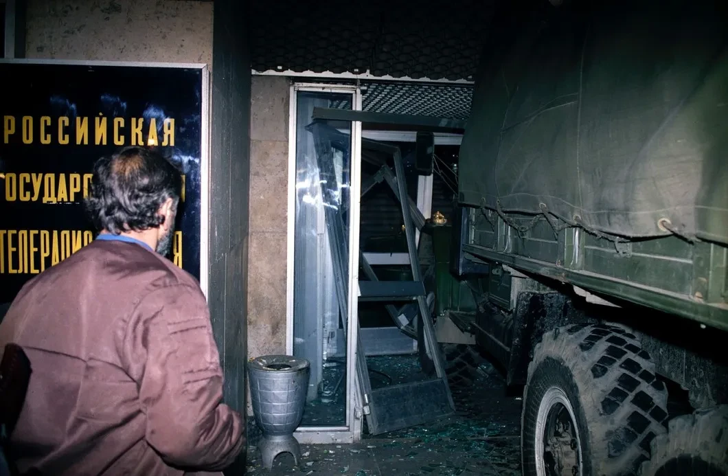 <…> Когда нападавшие ворвались в здание, и бой завязался на первом этаже, мы решили отключать эфир и принять меры к тому, чтобы даже в случае проникновения в студию оппозиционеры не смогли бы выйти в эфир. К счастью, вскоре прибыли БТРы.