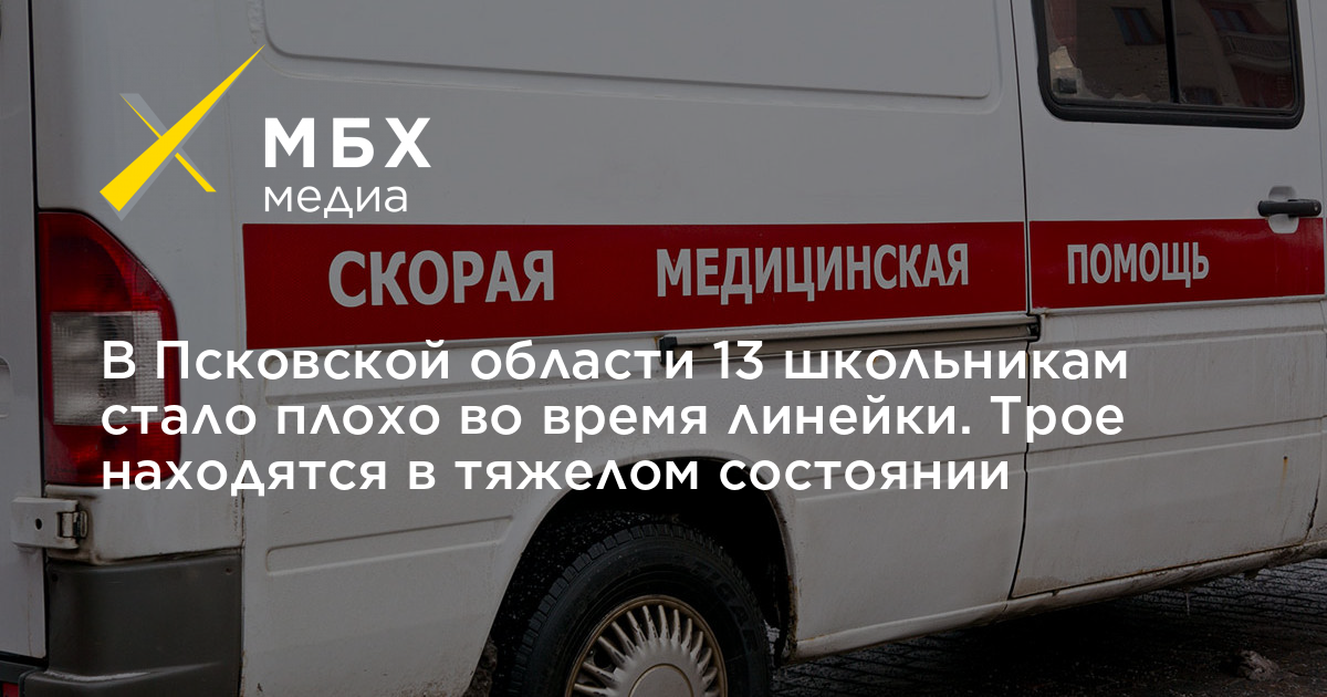 В Великих Луках в Псковской области 13 учеников школы №7 почувствовали себя плохо во время торжественной линейки, их госпитализировали, трое детей находятся в тяжелом состоянии. Об этом говорится в официальном телеграм-канале области.