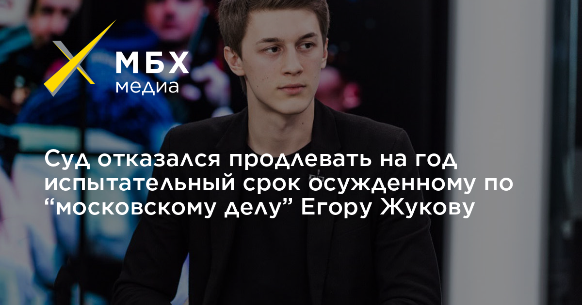 Кунцевской суд Москвы отклонил ходатайство ФСИН о продлении на год испытательного срока Егору Жукову, которого приговорили к трем годам условно по «московскому делу». Об этом сообщает корреспондент «МБХ медиа». Суд счел требование ФСИН необоснованным.