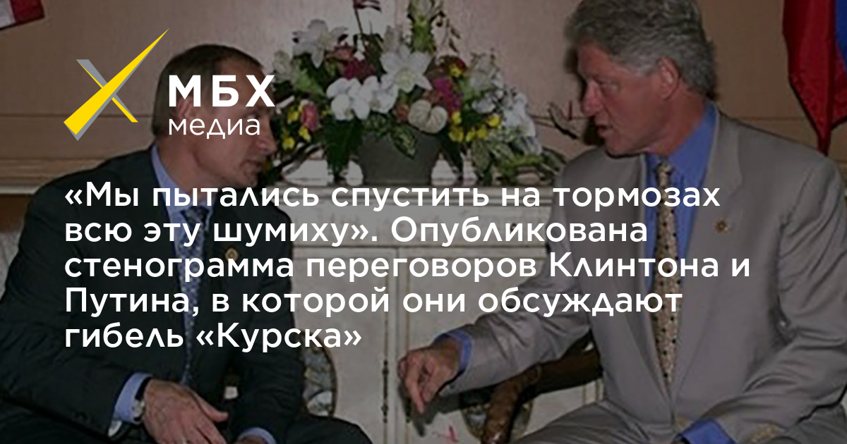 Согласно стенограмме, Клинтон выразил соболезнование Путину в связи с тем, «через что ему пришлось пройти из-за гибели «Курска». «Когда происходит что-то такое, люди по всему миру представляют себя на месте жертв и их близких, но я представлял себя и на вашем месте. Вам, наверное, пришлось столкнуться со множеством критики. Это всегда случается», — заявил Клинтон.