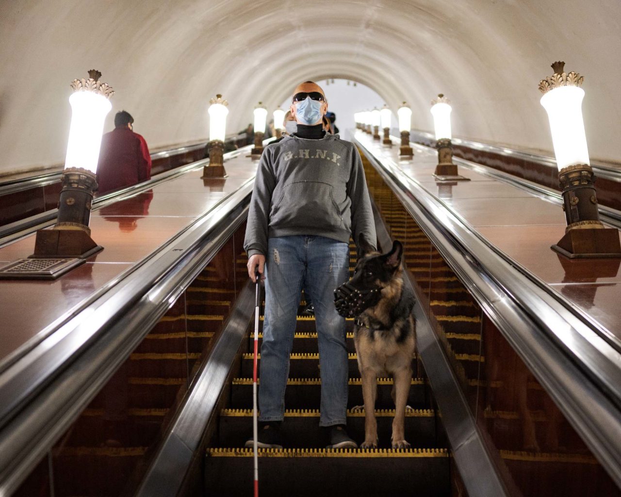 Дмитрий с Паркером в метро. Дмитрий рассказывает, что самое опасное для собаки — это распашные двери в метро и сход с эскалатораФото: Стоян Васев для ТД Дмитрий