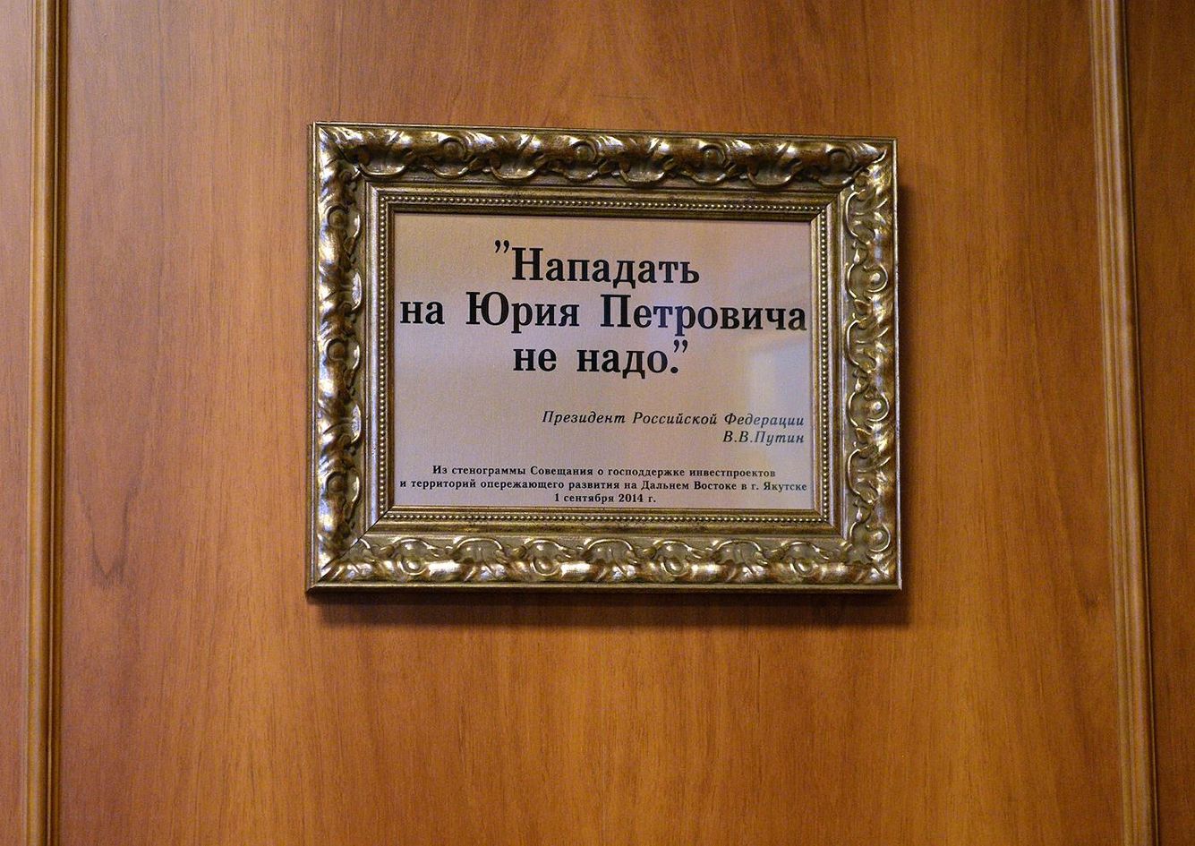 Цитату Путина Юрий Трутнев поместил в рамку и повесил на стене в своем кабинете, вместе с другой президентской фразой: «Нападать на Юрия Петровича не надо». Последняя цитата обращена к Владимиру Якунину, который, будучи еще главой РЖД, упрекнул Трутнева в том, что тот привел неправильные цифры в своем докладе.