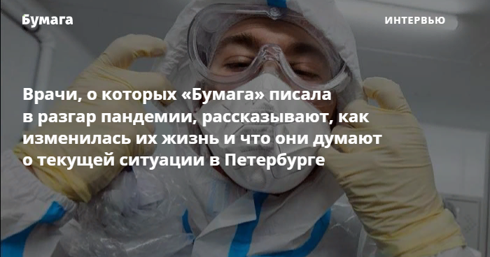 Весной, в разгар пандемии коронавируса, «Бумага» регулярно рассказывала истории петербургских врачей и публиковала их мнения о ситуации в городе и действиях властей. Мы узнали, как с тех пор изменилась жизнь четырех наших героев и что они думают о происходящем сейчас.