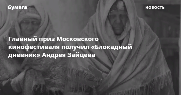 Фильм Андрея Зайцева «Блокадный дневник» выиграл главный приз «Золотой Георгий» на 42-м Московском международном кинофестивале.