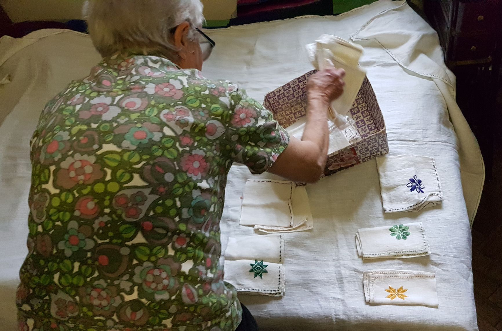 Да, мне о ней еще весной внучка напомнила. Я начала ее вышивать в 2002 году, в центре – символ солнца, вся вышивка – в цветах радуги. Кроме скатерти, есть еще салфетки – на каждой звезда, как символ человека. Только я не все еще вышила. Такие же звезды я хочу нашить на скатерти. Хочу, чтобы мои дети, внуки и правнуки застилали ею стол на свадьбу. Я очень люблю шить, хотя с такими пальцами это становится сложно. Но когда я шью, то успокаиваюсь. Это моя отдушина. Но я пока скатерть так и не дошила, поэтому и власть не сменилась. Каюсь.