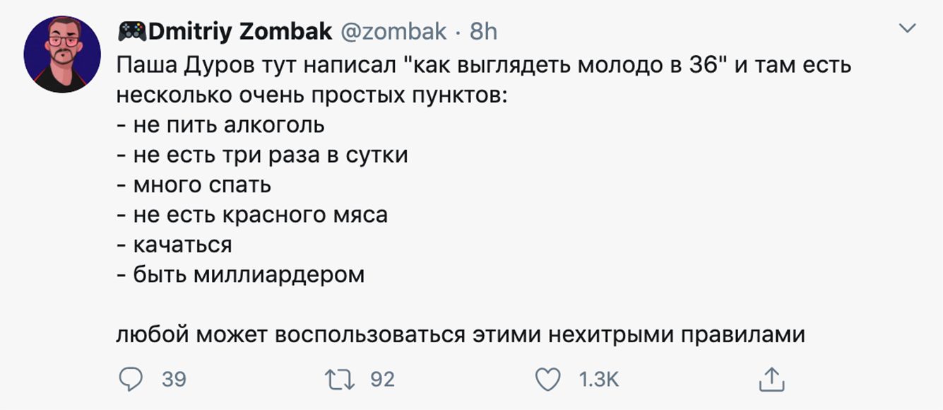 Павел Дуров поделился секретом молодости. Чтобы не выглядеть на свой возраст, достаточно просто…