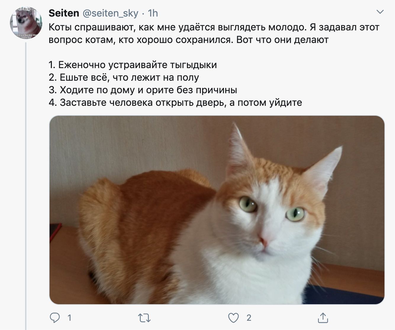 При этом учиться оставаться молодым можно не только у Павла Дурова, но и у котов (тыгыдык!)