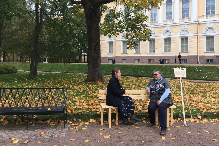 Организаторы также сообщили, что установили у Русского музея среди классических скамеек «скамейку с особенностями», в которой вместо одного широкого сиденья есть лишь два узких. «Особенность скамейки в том, что, с одной стороны, она демонстрирует дистанцию, на которой находится человек с особенностями от остальных членов общества. С другой же стороны — это такая скамейка, на которой люди могут сидеть лицом друг к другу, могут увидеть друг друга и принять».
