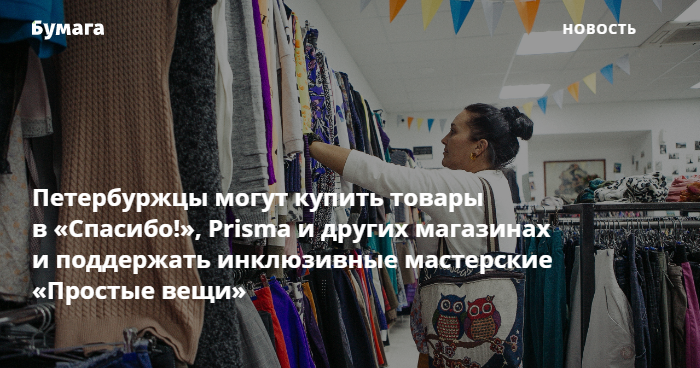 Горожане могут купить специальные товары в «Подписных изданиях», «Спасибо!», Prisma и других магазинах и таким образом поддержать инклюзивные мастерские «Простые вещи», где люди с особенностями развития психики и интеллекта вместе с профессиональными мастерами, художниками и волонтерами занимаются творчеством.