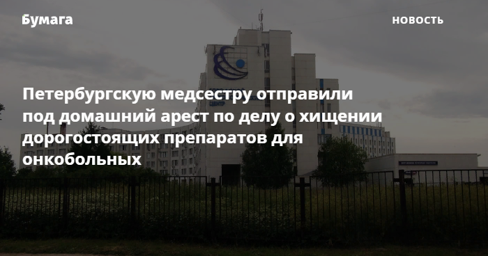Невский районный суд отправил под домашний арест медсестру Городского клинического онкологического диспансера Елену Сергейчик по делу о крупном хищении медицинских препаратов для онкобольных.