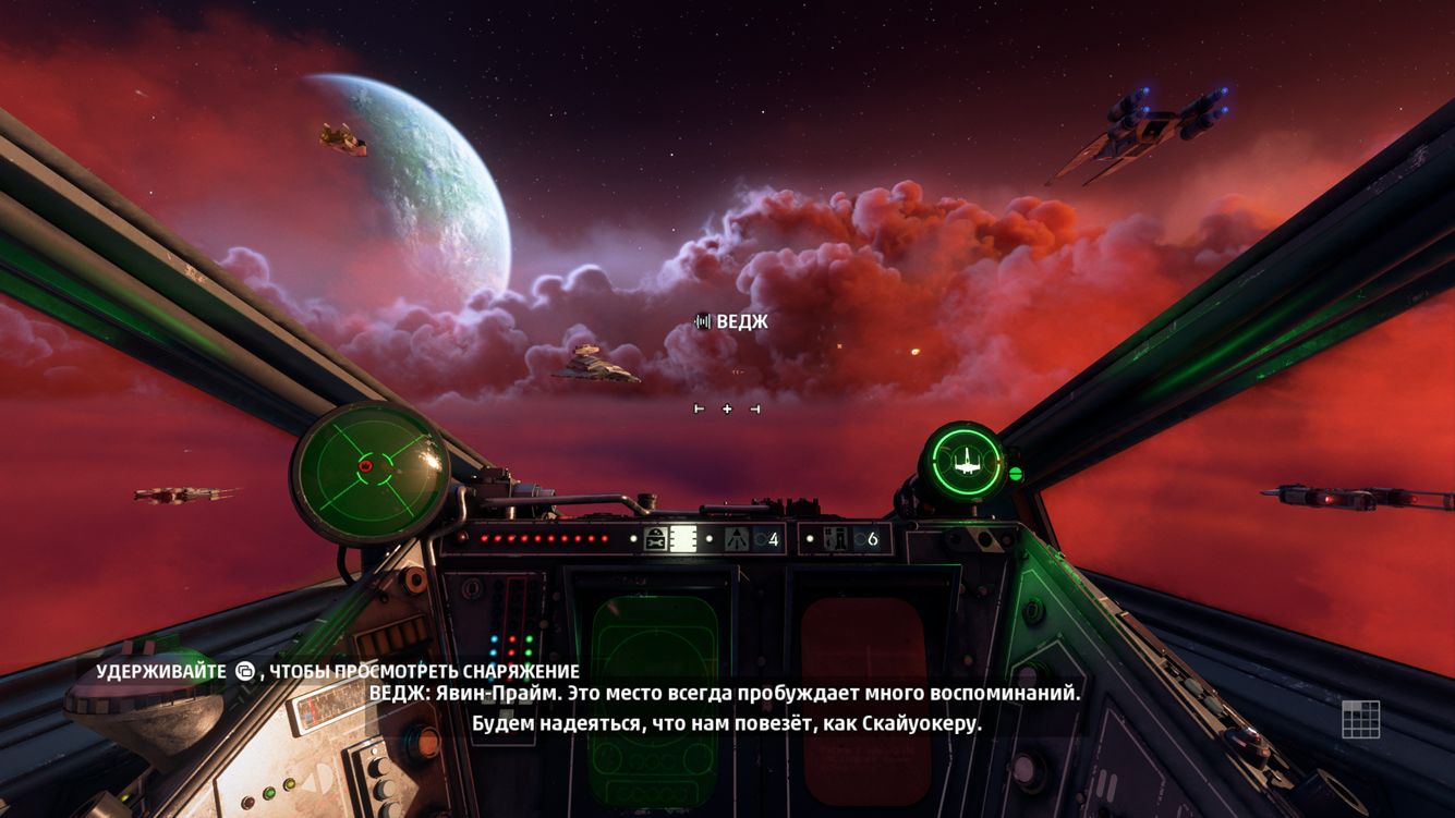 Главное — да и по сути единственное — преимущество, которое получает игрок в VR-шлеме, заключается в возможности оглядеться по сторонам. Особенно когда сидишь в одном из кораблей Новой Республики с отличным круговым обзором. Правда, выискивая очередной вражеский корабль, легко можно пропустить уведомление о подлетающей ракете.