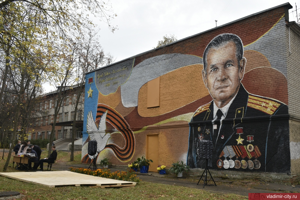 12 октября во владимирском лицее-интернате №1 прошло торжественное открытие граффити с изображением героя Советского Союза, почетного гражданина города Владимира Ивана Михайловича Гусева.