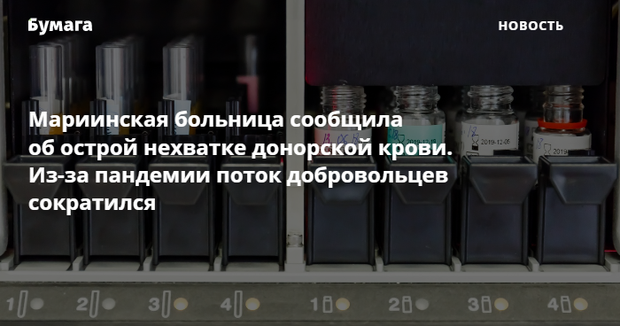 В июле и августе Мариинская больница уже сообщала о нехватке донорской крови. Тогда это связали с пандемией коронавируса, во время которой поток доноров сократился.