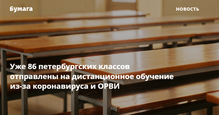В Петербурге из-за карантина по COVID-19 и ОРВИ на дистанционное обучение перевели 86 классов в 40 школах. Об этом сообщает «Фонтанка» со ссылкой на комитет по образованию.