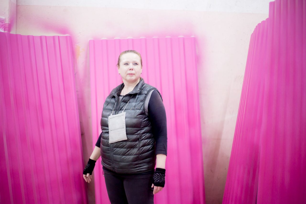 В небольшом отделе, где Алина с напарницами стоят по многу часов, то и дело гремят бочки. Тут забирают мешки с одеждой, утрамбовывают, завязывают, уносят к палетам. Я спросила, что значит «строже». «Без пятен, дыр, незаношенное. Советские пальто не кладем: никто не будет носить, мы поняли это из обратной связи, методом проб и ошибок», — улыбается Алина.