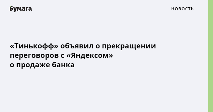 «Тинькофф» объявил о прекращении переговоров с «Яндексом» о продаже банка