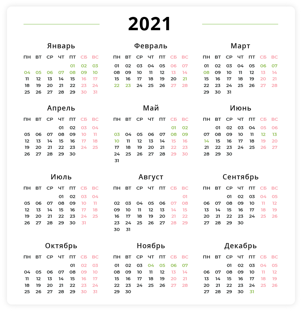 Выходные и праздничные дни 2021 года