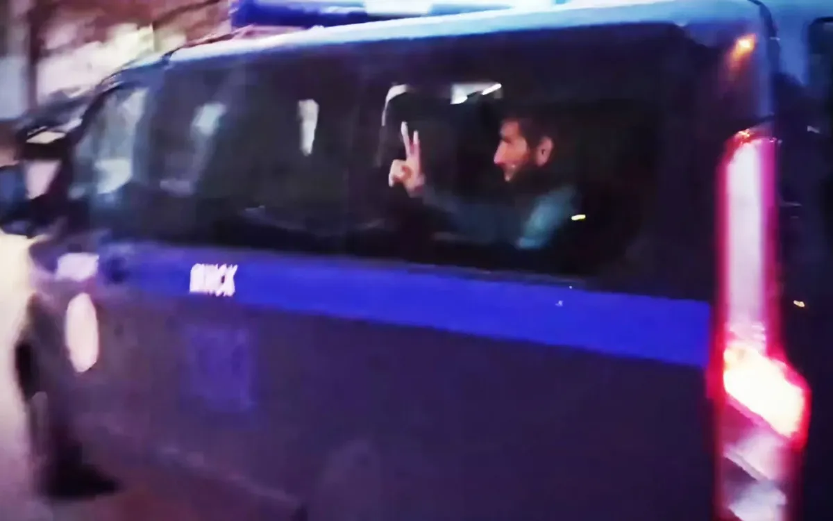 На широкой улице Козлова беспрерывное гудение: автомобилисты приветствуют протестующую молодежь. На пересечении с проспектом Независимости колонна дожидается зеленого сигнала светофора, начинает переход дороги, и вдруг к ней с двух сторон подъезжают микроавтобусы.