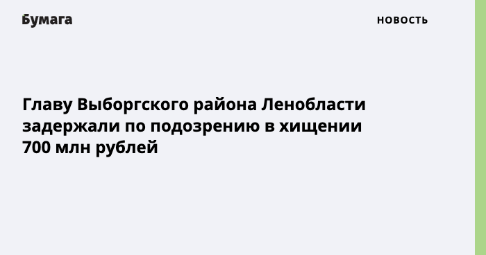 Главу Выборгского района Ленобласти задержали по подозрению в хищении 700 млн рублей