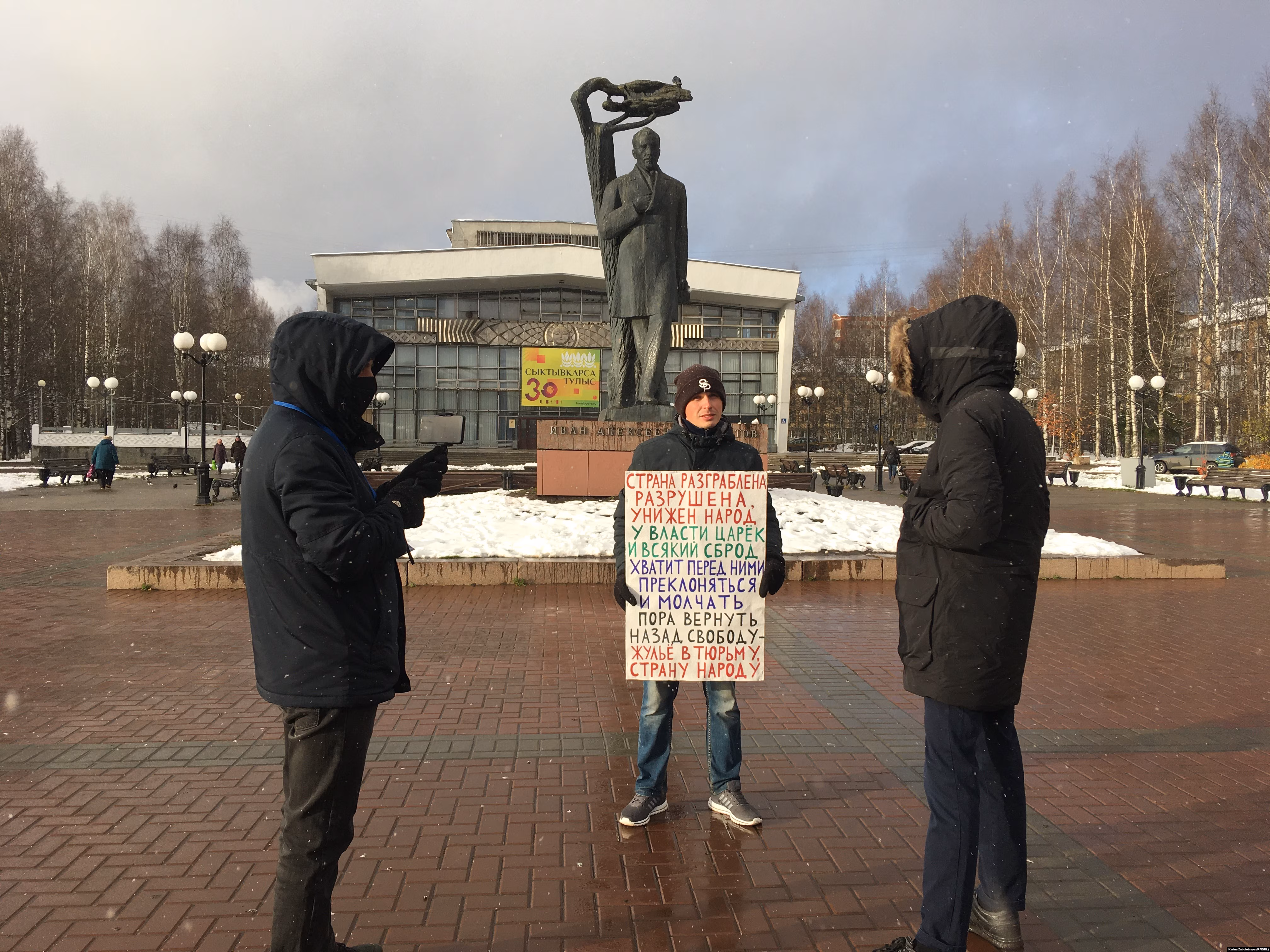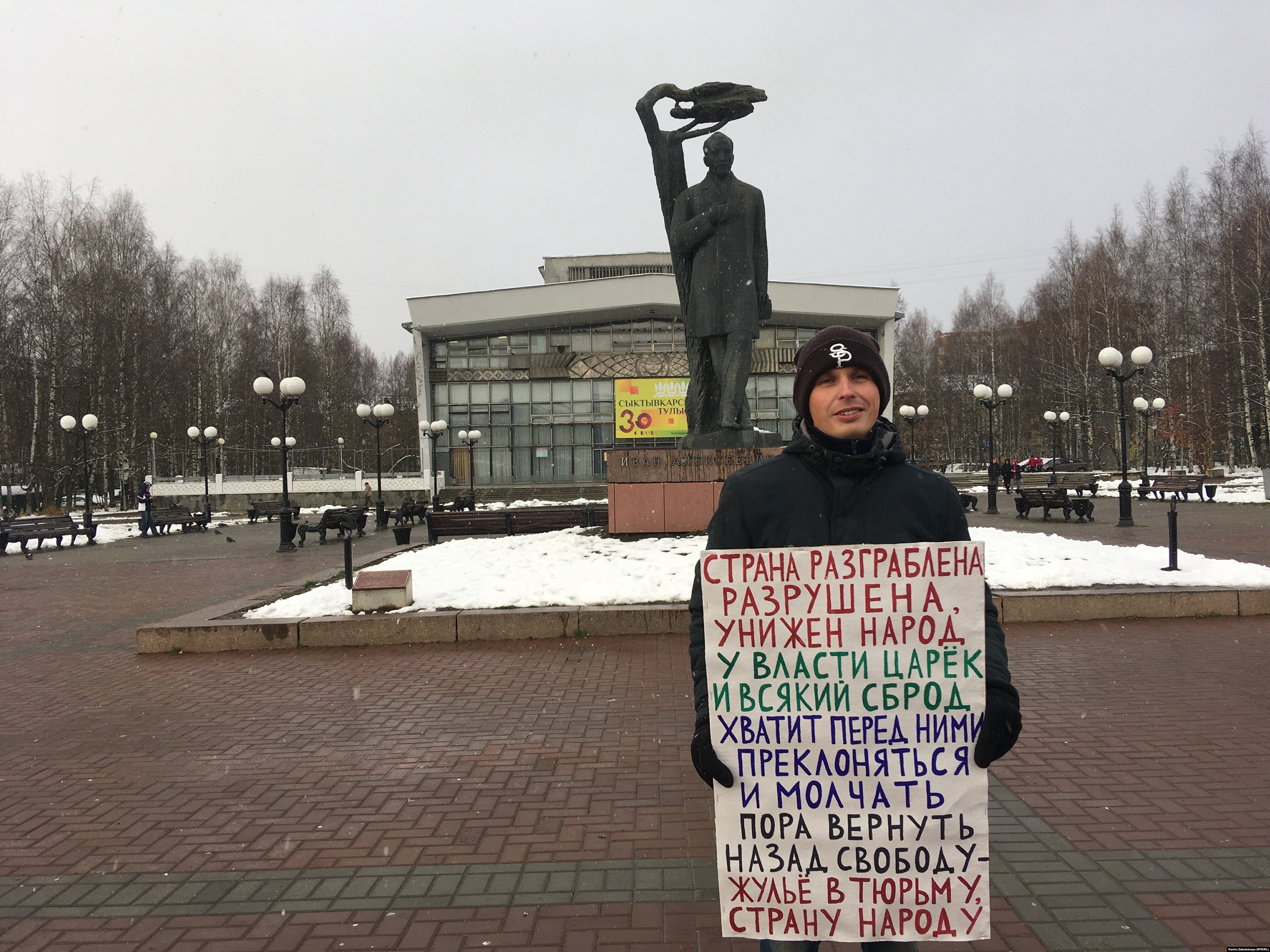 Житель Сыктывкара Дмитрий Лютоев выходит в одиночные пикеты с августа — после того, как начал читать в соцсетях про ситуацию в Беларуси и Хабаровске.