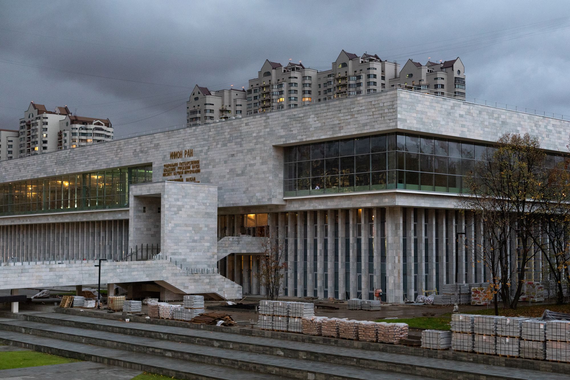 Библиотека ИНИОН РАН — один из главных шедевров московского модернизма. Здание Якова Белопольского хотели признать памятником, но не успели — 30 января 2015 года оно серьезно пострадало во время пожара. Тогда библиотеку решили отстроить заново в соответствии с изначальными габаритами и функцией. К октябрю 2020 года полностью готовы фасады, идет благоустройство амфитеатра на месте бывшего водоема, внутри здания работают над отделкой интерьеров и монтажом оборудования. Стройку планируют завершить до конца 2021 года. О том, как выглядит библиотека сейчас, почему стало возможно ее восстановление и что нужно сделать, чтобы полюбить и сохранить советский модернизм, «Медуза» поговорила с Денисом Ромодиным — архитектурным краеведом и старшим научным сотрудником Музея Москвы.