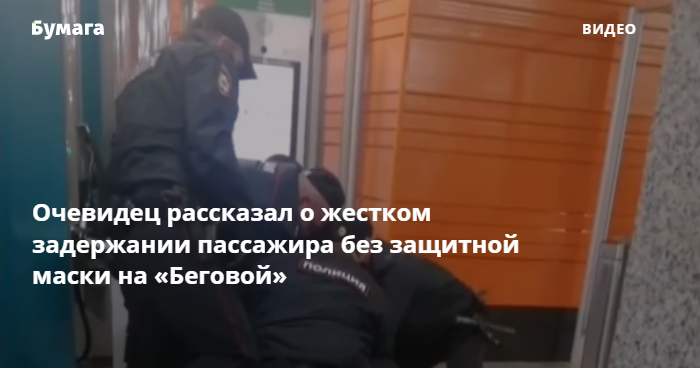 Очевидец рассказал о жестком задержании пассажира без защитной маски на станции метро «Беговая» в Петербурге. Вот видео
