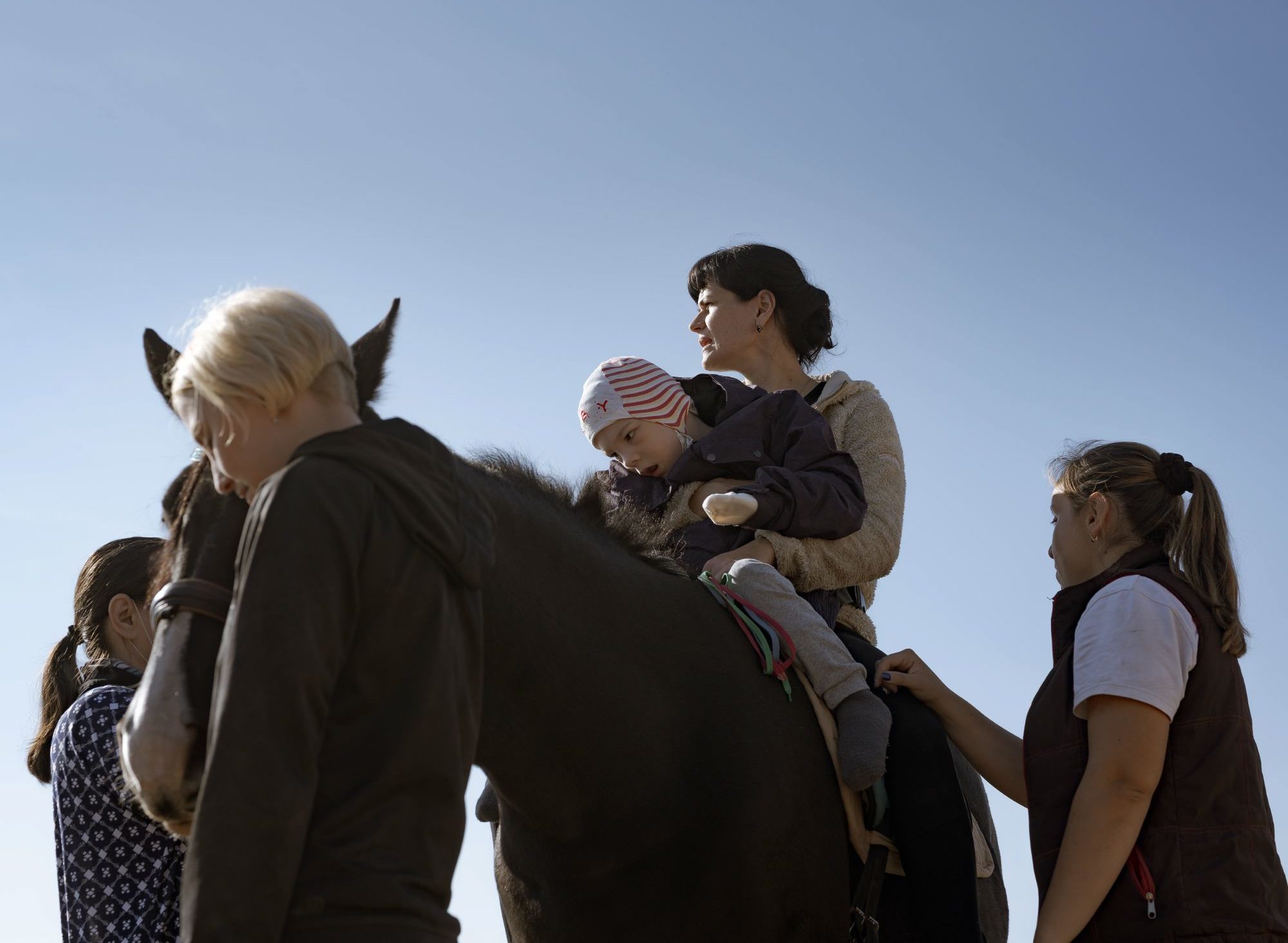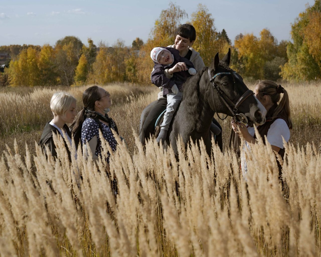 На лошади с Мироном — Маша (инструктор по адаптивной верховой езде. Общественная организация «Крылья» для помощи детям с расстройствами аутистического спектра)Фото: Стоян Васев для ТД Чтобы не сойти с ума от новой жизни, Наталия снова стала вышивать: работы выходили такими же аккуратными и объемными, как и раньше, и ниточка обязательно уходила под гладь — не придерешься.