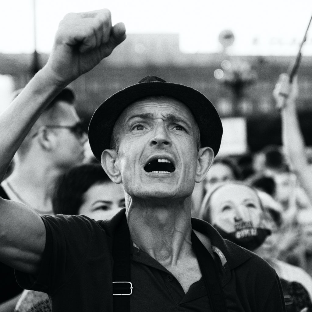 У меня штрафов — екарный бабай, почти на 50 тысяч рублей. Когда на протест шел, я не думал об этом, там сердце гуляло, душа пела. Когда во второй-третий раз вышел — все узнают, руки жмут, я аж заплакал. Я шел в колонне и заплакал. Гордость взяла за наш народ. Вы все прекрасно знаете, кто я. А тут люди просто поверили.