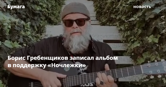 Как отмечают в «Ночлежке», Борис Гребенщиков уже много лет поддерживает организацию. Он снимался в социальной рекламе, выступал на фестивалях, а также помогал купить «Ночной автобус» (с его помощью на стоянках бездомным раздают еду, одежду, средства гигиены, а также оказывают медицинскую помощь).