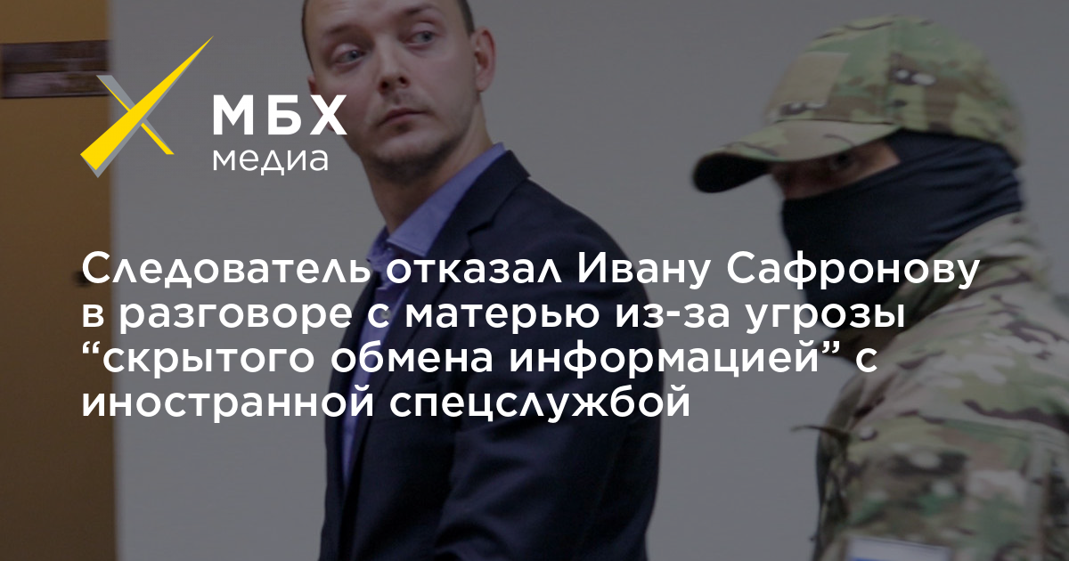 Следователь отказал арестованному по делу о госизмене журналисту Ивану Сафронову в телефонном разговоре с матерью в день ее рождения, так как обвиняемый может использовать его для «выполнения разведывательных заданий иностранной спецслужбы». Об этом сообщил «МБХ медиа» адвокат Иван Павлов.
