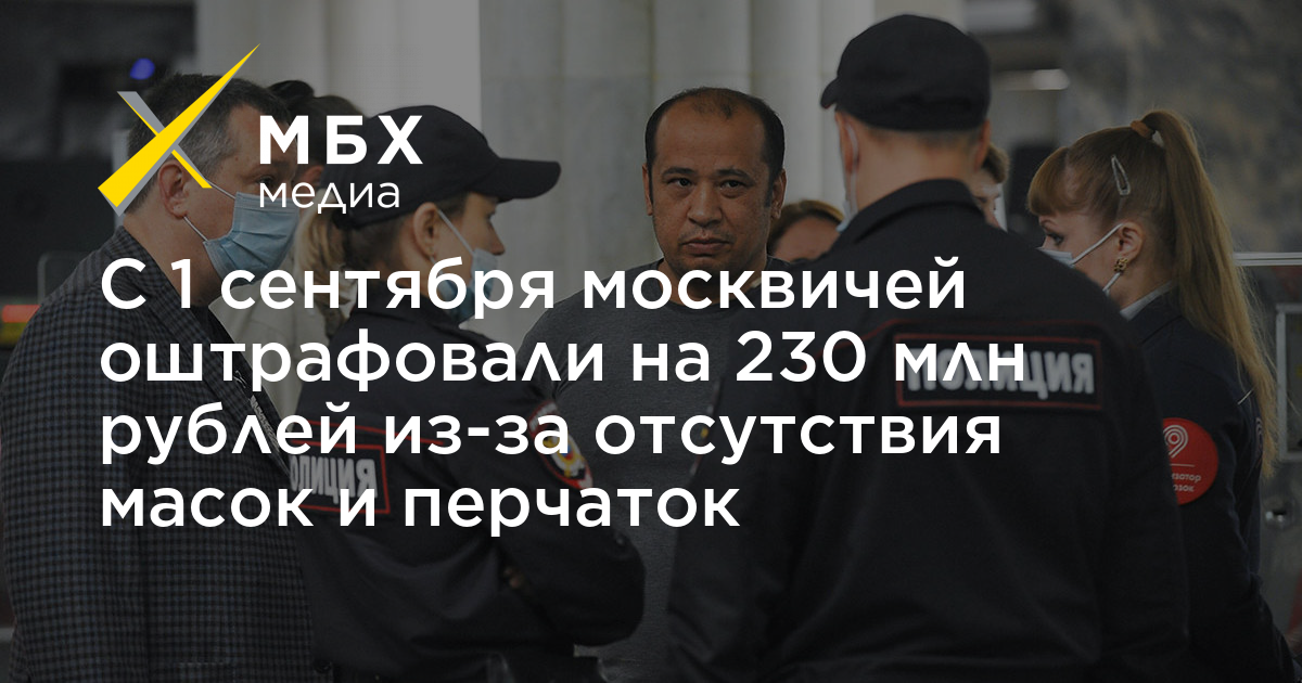 С 1 сентября москвичей оштрафовали на 230 млн рублей из-за отсутствия масок и перчаток